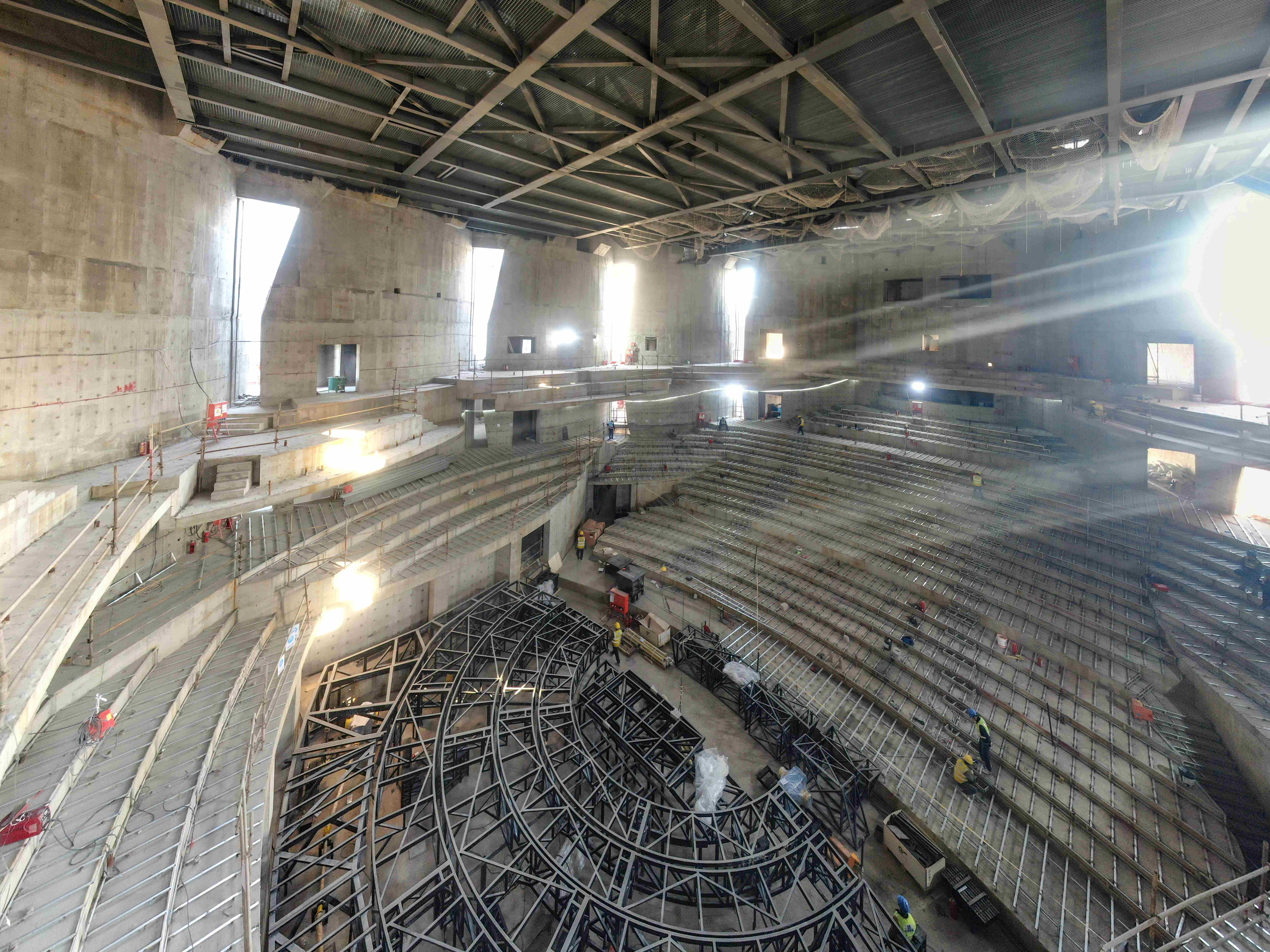 The milestone follows the completion of the interior concrete shell for Symphony Hall. It highlights one of the Hall’s most distinguishing features: windows that will allow natural light into the room. Yi Shen of our Shanghai studio remarked that the dramatic play of light that we tried to evoke in our competition visualization is even more stunning in person.