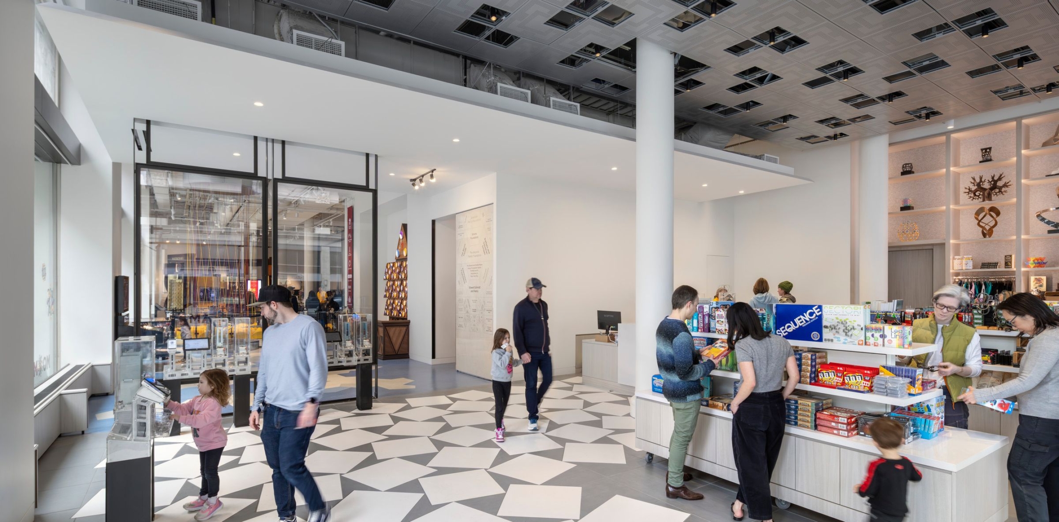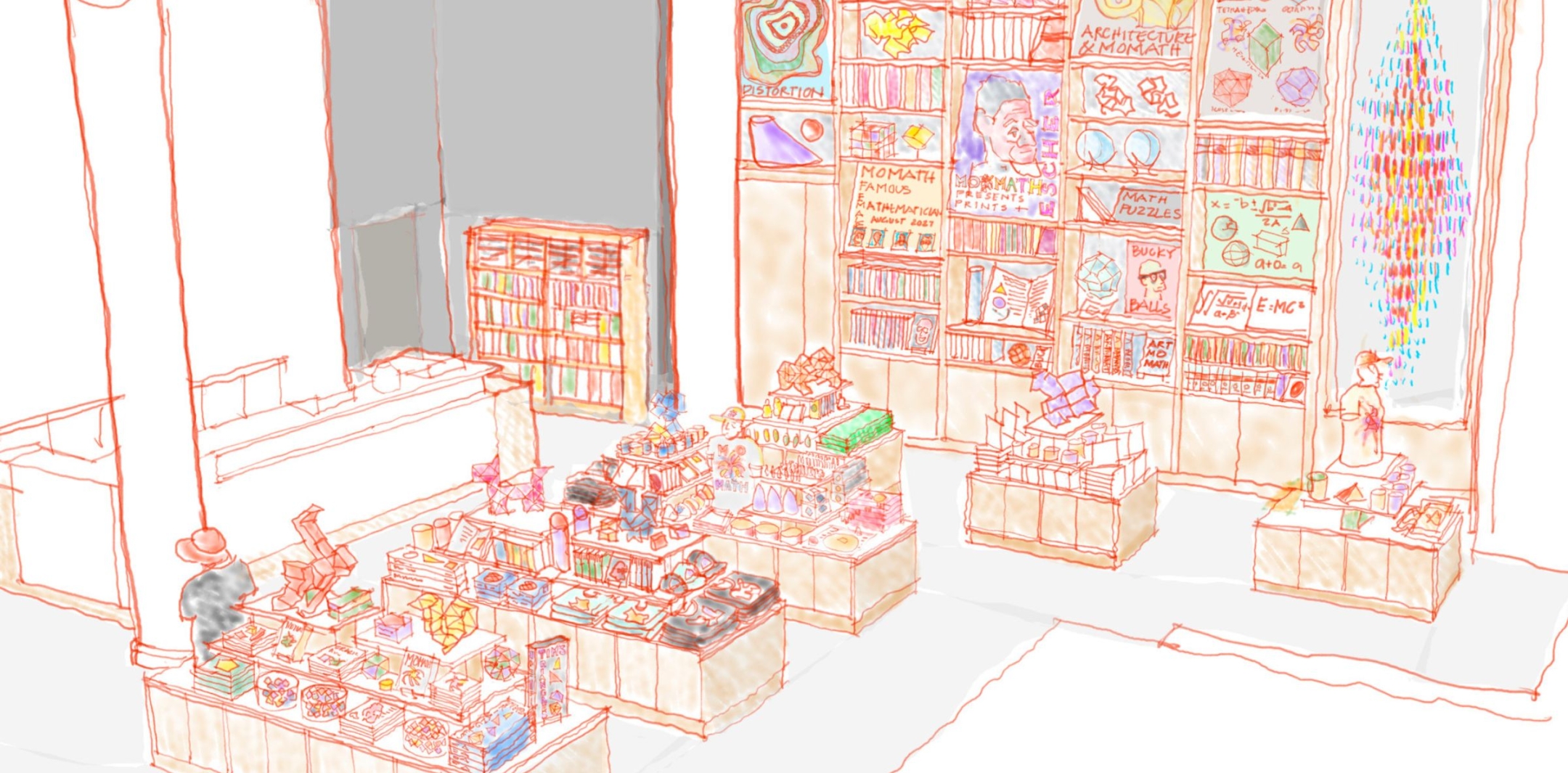 The sketch of the National Museum of Mathematics gift shop by Co-CEO and Executive Director Nick Leahy helped the client understand the intent of the space before proceeding with the design.