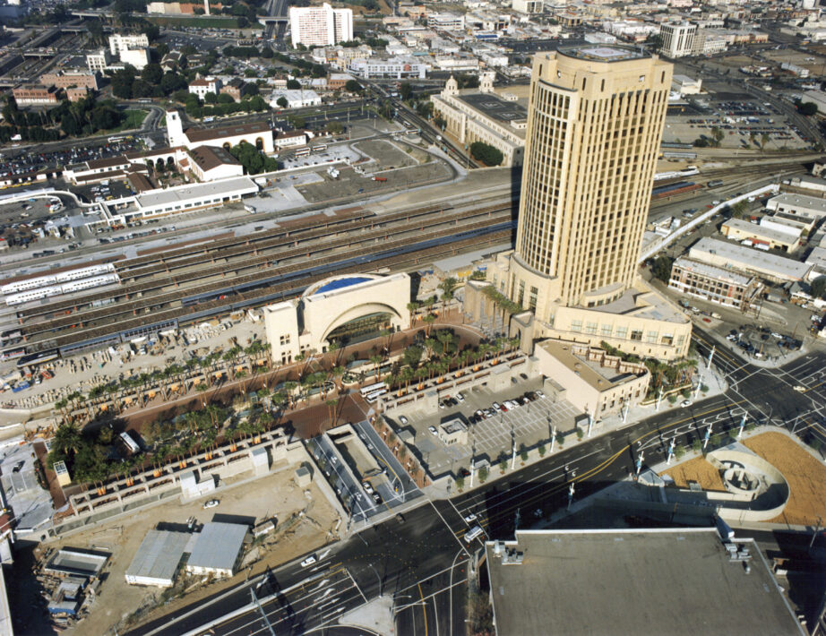 Los Angeles, home of the car and the freeway, is not the place one would expect to find the country’s largest intermodal transportation facility. Nor would such a facility ordinarily be contemplated as a centerpiece of a pedestrian-focused downtown revitalization plan. Gateway Center is both. Our master plan for the seventy-five-acre Alameda District centers on a site adjacent to Los Angeles’ landmarked Spanish-style 1930s Union Station. There, the Gateway Intermodal Transit Center links nearly every means of ground transportation—buses, subways, Amtrak, light rail, and the Metrolink commuter line, together with a three-thousand-car park-and-ride facility—returning this neglected location to its origins as the grand portal to Los Angeles.